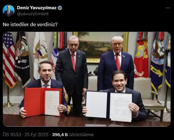 Cumhuriyet Halk Partisi (CHP) Genel Başkan Yardımcısı Deniz Yavuzyılmaz, Cumhurbaşkanı Recep Tayyip Erdoğan ile ABD Başkanı Donald Trump görüşmesinde iki ülke arasında imzalanan nükleer anlaşmaya “Ne istediler de verdiniz?” sözüyle tepki gösterdi.